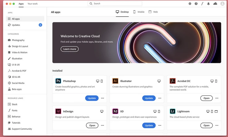 Should a Creative Cloud Desktop App on a Windows 8.1 look like this (A):