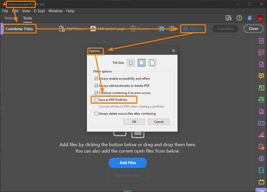 The new version of Acrobat does not allow combining files into a regular pdf. HELP!!