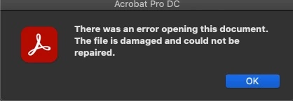 Recently, it has been brought to my attention that if users on Windows10 digitally sign a PDF (using a valid and trusted digital certificate) and if they send this new digitally signed PDF via email (Outlook), users on the mac side are not able to open/preview it from Outlook, even if we first "save as" the file and then open with Adobe. The error message is always the same "There was an error opening this document. The file is damaged and could not be repaired."