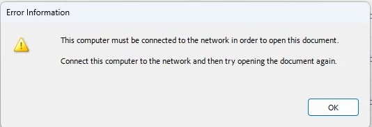 This computer must be connected to the network in order to open this document - Livecycle prompt