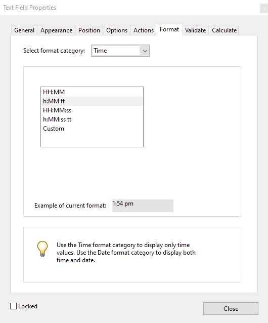 I have a form with a time box. When open in Adobe reader, you can enter whatever time you want, am or pm. When you open the form in a browser (company uses Edge, also happened in Chrome), it overrides anything you type and inserts current time instead. I have a standard time setting selected, nothing custom is being used. How do I allow manual entry when using in a browser and stop it from overriding with the current time?
