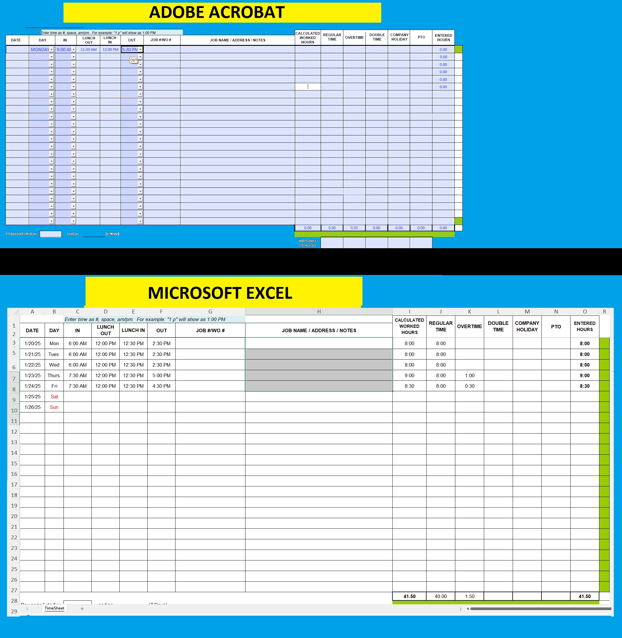 Regular Hours: Worked hours for that same day but it will stop at 8 hours then carry over to “OVERTIME”