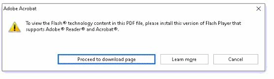"To view the flash technology content in this pdf please install the required version of flash player that supports Adobe Reader and Acrobat"