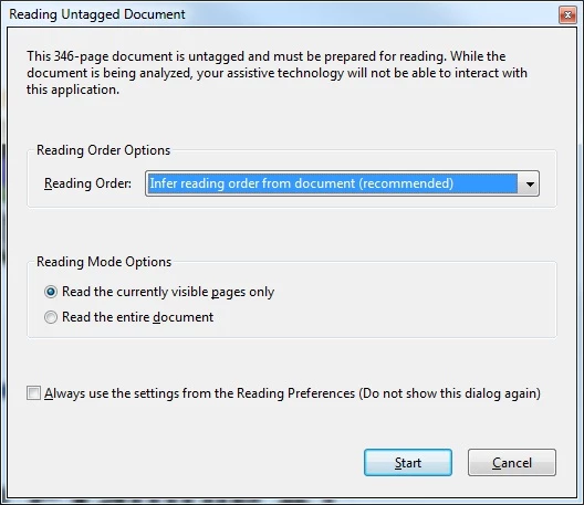 As you understand, I find this really annoying, and specially when I know it is possible to disable this feature. On the computer labs at the university, they got the same software (and the same setup), but when I open the same document on those computers, I never experience this "problem". So my conclusion is that it is possible to disable this feature, and just open new documents and scroll how much as I want without having to wait for Adobe to rotate pages, deskew images, etc..