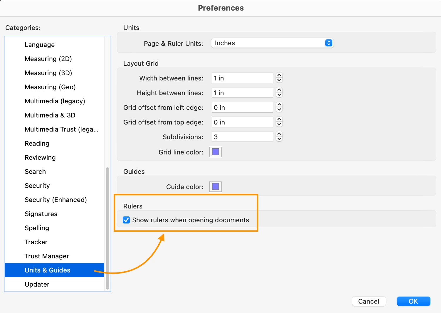 I have the Acrobat reader, version 2025.001.20577 and I don't want to have to turn the rulers on every time I open a file.