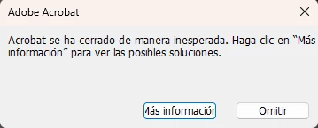 Acrobar has closed unexpecttedly. Click "More Information" to see possible solutions.