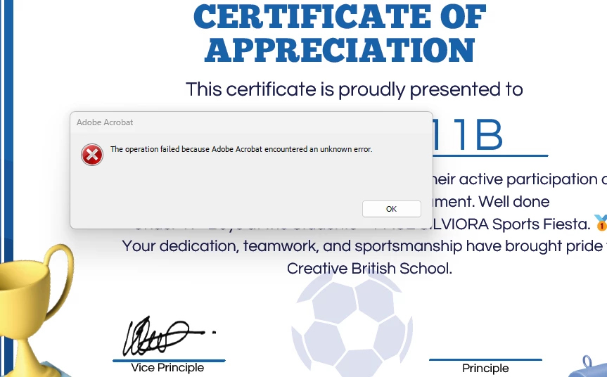 @Creative British Scho9028 do you have permission to add an e-signature to a certificate? I don't know how these certificates are generated? I am guessing since the Vice Principal is signed, you are wanting the Principal signed too. (Maybe it's just my Canadian roots, we call our 'Principal' not 'Principle' (Principle is a guiding rule or a basic truth.)