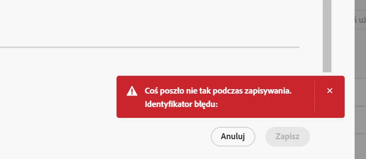 Coś poszło nie tak podczas zapisywania. Identyfikator błędu: