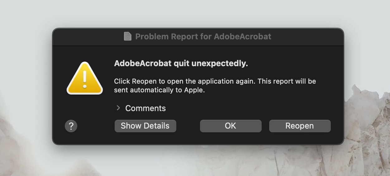 Trying to edit a pdf but getting an unexpected error as soon as I hit "Edit PDF"