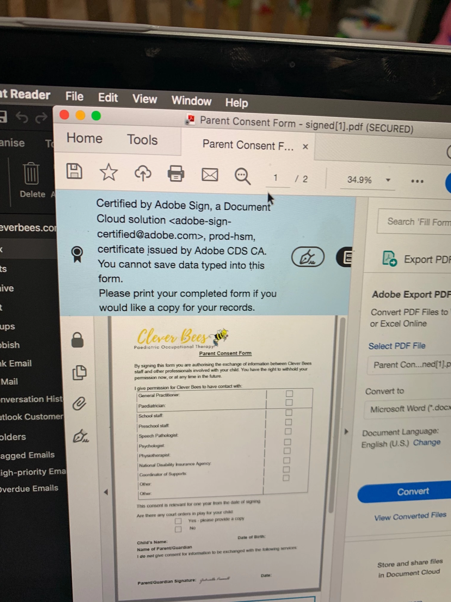 Unable to save completed documents