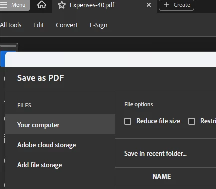 But from the save screen, SharePoint isn't an option:
