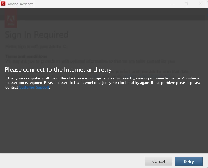 Unable to sign in to Adobe Acrobat Pro 2017