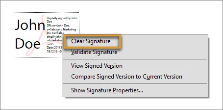 To remove your signature, right-click the signature and then choose Clear Signature.