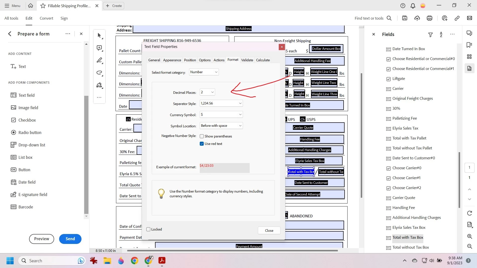 I am preparing a form for our shipping department and I have it set up to calculate taxes, palletizing, etc and give a total. At first, it was giving me numbers with a bunch of decimal places like $37.555555557778 so I set the format to number and 2 decimals. It also makes an unwanted zero appear in that space even though no data has been entered yet. How can I fix this? I want my calculations to remain the same and for the numbers to only display 2 decimal places but I don't want the zero there because we sometimes have to fill out the form manually. I have very little experience with java script, I read up on some things but they do not make any sense to me. If there is a flat out formula you know that I can just copy and paste to the custom format box that achieves this, please just let me know. I greatly appreciate any help and thank you for your time. If this post is duplicated, I apologize, I think I posted it in the wrong area.