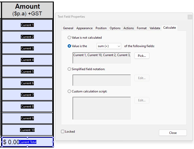 We use an internal form in our Company that has a group of fields that are formatted as currency. The sum of these fields is totalled at the bottom.