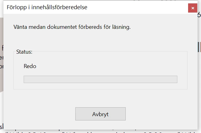 Vänta medan dokumentet förbereds för läsning (Wait while the document is prepared for reading)