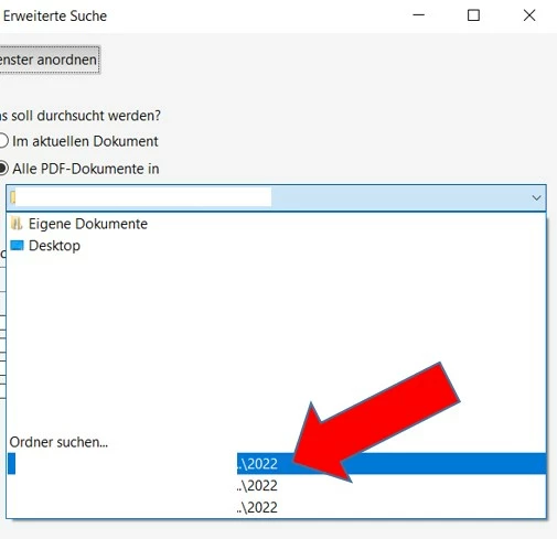 sobald ich in der Erweiterten Suche --> Ordner suchen einen ausgewählt habe speichert ACROBAT diesen Zielordner automatisch.