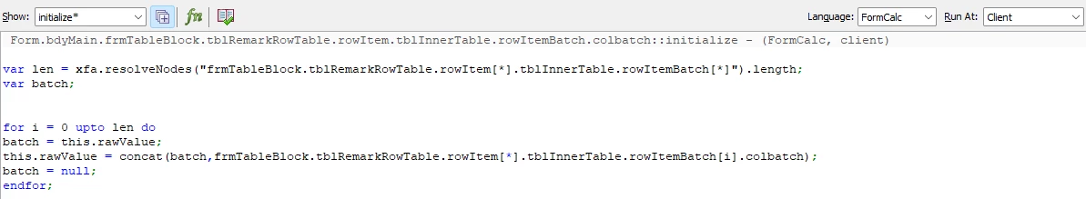 I have a requirement where i have table with multiple line item and i want to concatenate the all the subsequent line items in tabel from same column into first line item field, For example after executing the form if there are three line item lets say