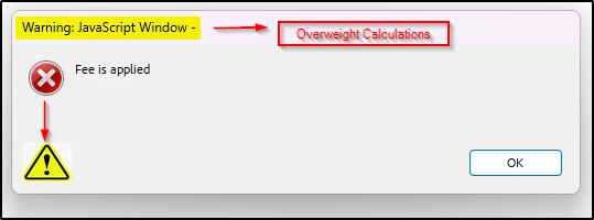 app.alert("Fee is applied");