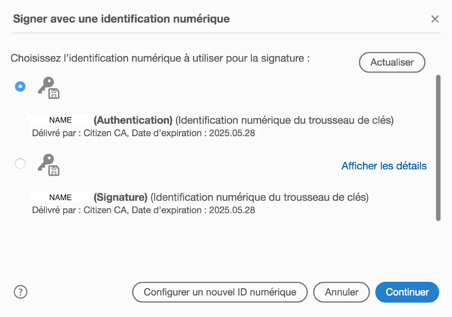 What is the difference between Authentication and Signature, in the "Certificate" tool of Adobe Acrobat Reader DC ?