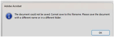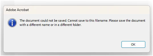 We are on Win11 PCs joined to an Active Directory enterprise environment running Adobe Acrobat DC 2025.0011.20474 64 bit. Opening a PDF on a windows 2019 server shared folder won't let us "save" that same PDF with the same filename after setting an encrypted password.