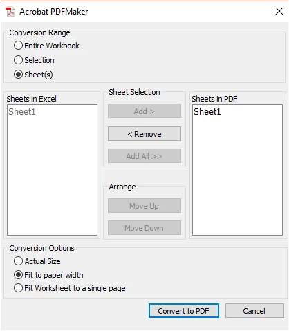 why does adobe change the page size when creating a pdf from excel