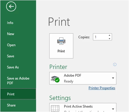 2. Adobe PDF printer in the print window.