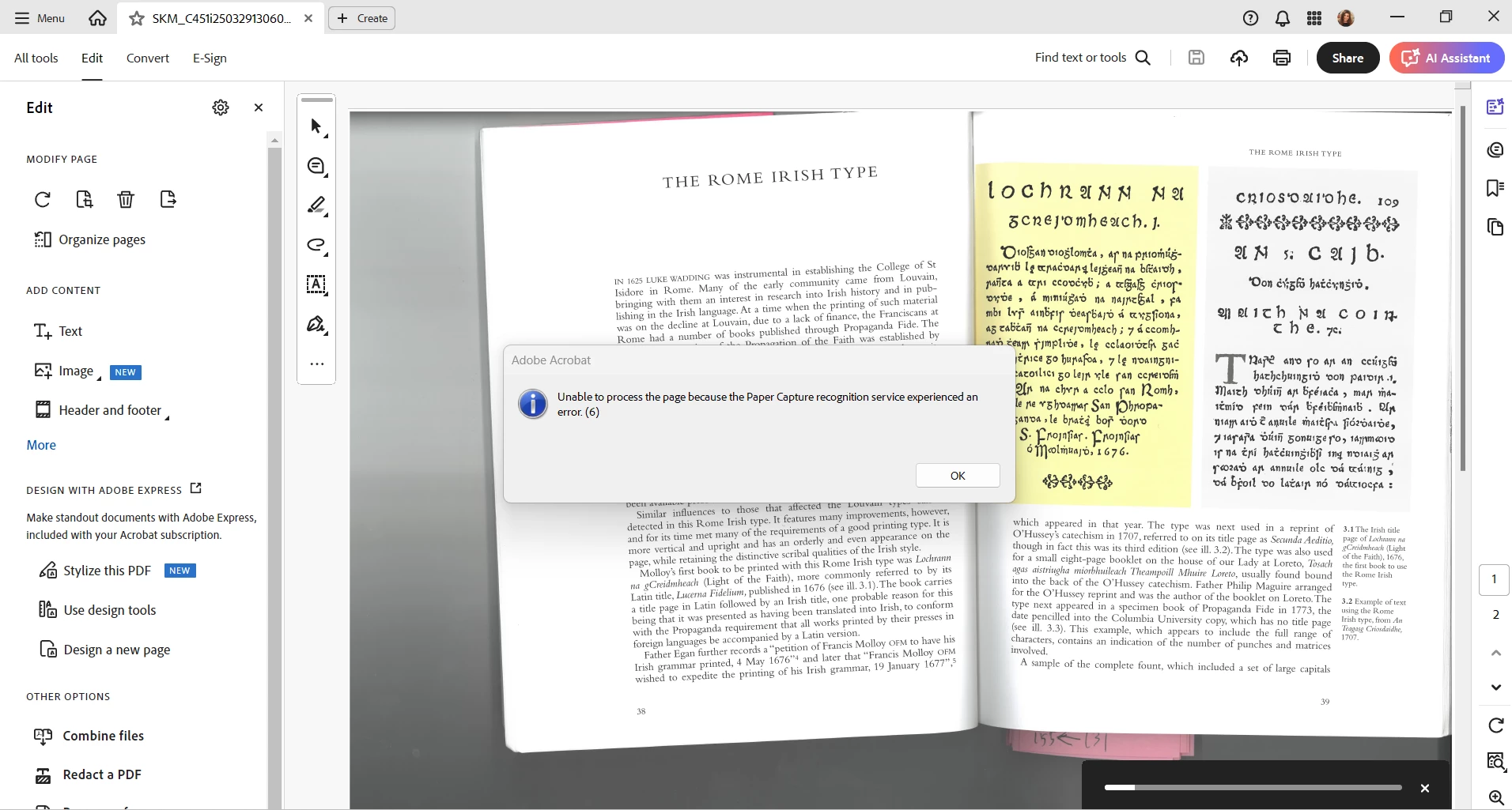 I'm trying to crop a scanned document but the crop feature gives me an error in Acrobat. Can I get comments on why this isn't working. I've posted screenshots below: