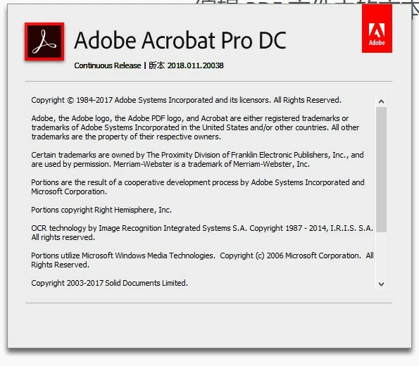 my acrobat dc version is: 2018.011.20038