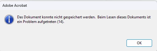 Wiederholte Fehlermeldung - Beim Lesen dieses Dokuments ist ein Problem aufgetreten (14).