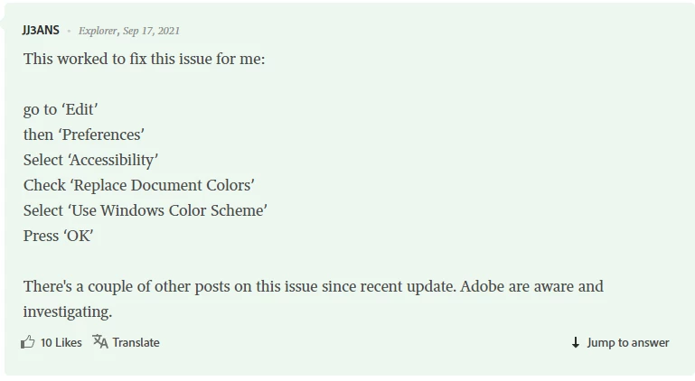 PDF page background changed to Yellow instead of no background for all pdf files after updating Acrobat with September’ 2021 release.