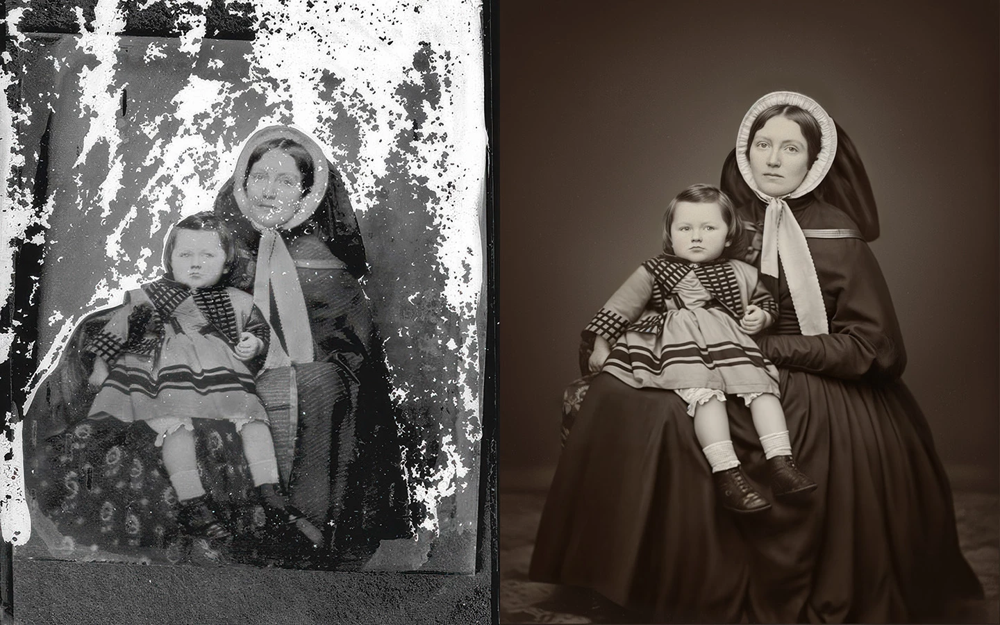I have great landlords. In exchange for providing me with thousands of dollars worth of cat food and litter over the past eight years for the two cats I “volunteered” to take from them in a moment of weakness, they asked if I might be able to restore this photograph. They own and have restored a number of properties built during the 18 hundreds in my neighborhood (affectionately referred to as The Village) and they wanted to hang this image in one of them. Adobe Photoshop and a variety of AI tools to the rescue.