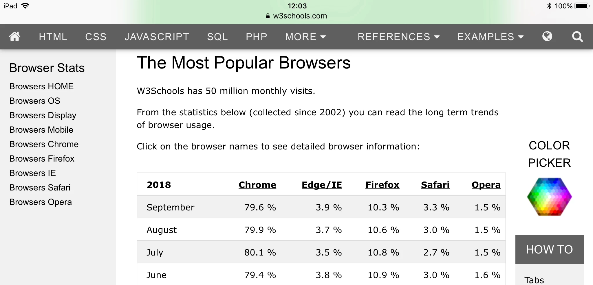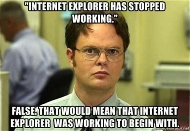 After starting 10 years ago, when IE had 90% of the browser in use share, Google Chrome now has 60+% of the market, and IE is down to about 15% - which includes the 2 computers in our shared office
