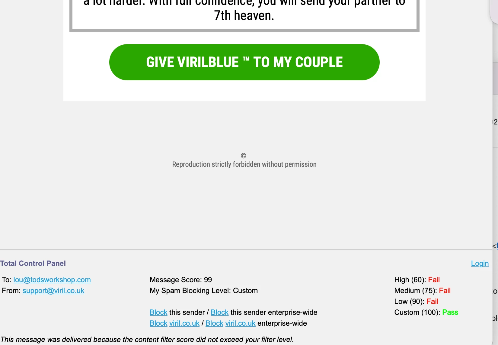 This is a problem for the above email sender address because I have received some messages which are clealry genuine and which I want to read, so blocking either sender or domain is not acceptable.