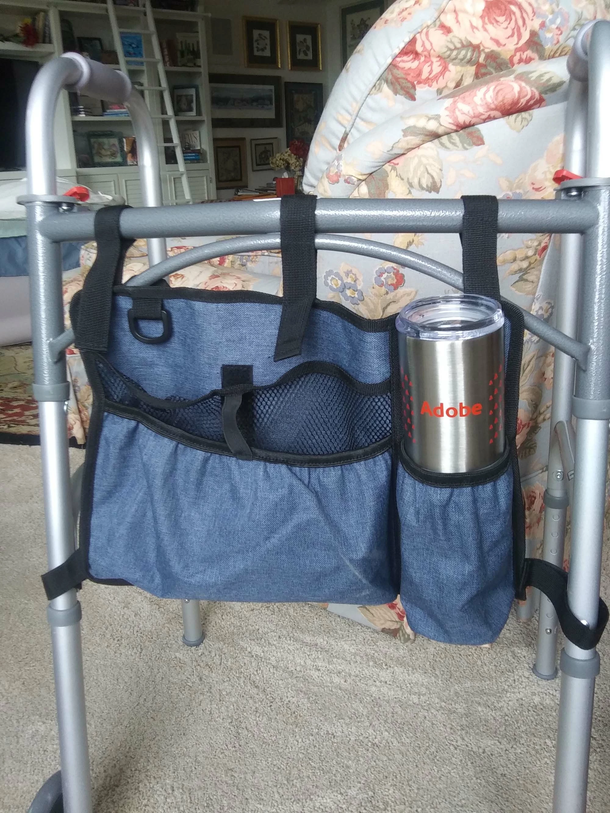 While she is recovering from a broken kneecap, and slowly moving around the house with a walker, my wife is using an Adobe cup I was sent last year... just the right size to fit in the pocket of the carry bag I bought to go on her walker