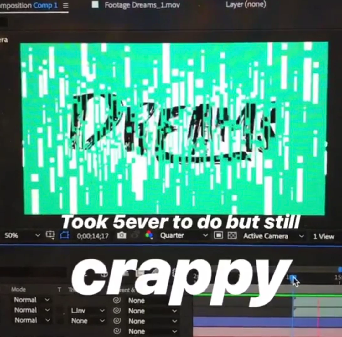 I'm trying to create an animation where the the layer "dreams" is underneath the i's, and is masked by the i's, so all you see is just remnants of the "dream" layer underneath. (This is my example, I had actually made, but I lost this version and when creating it, it doesn't work.