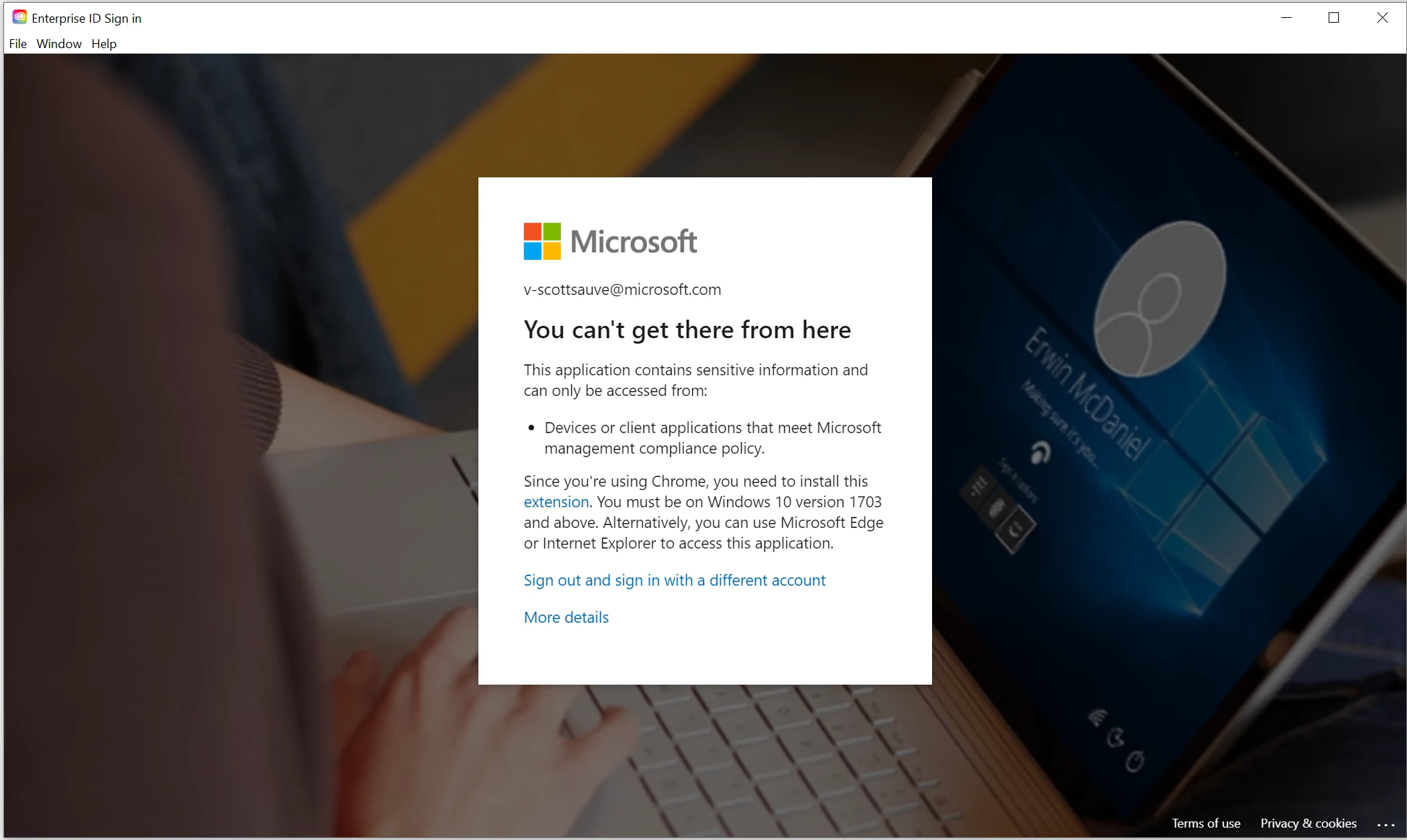 I'm having difficultly signing into my Microsoft enterprise account. When I finish signing into my enterprise, I am given the following result.