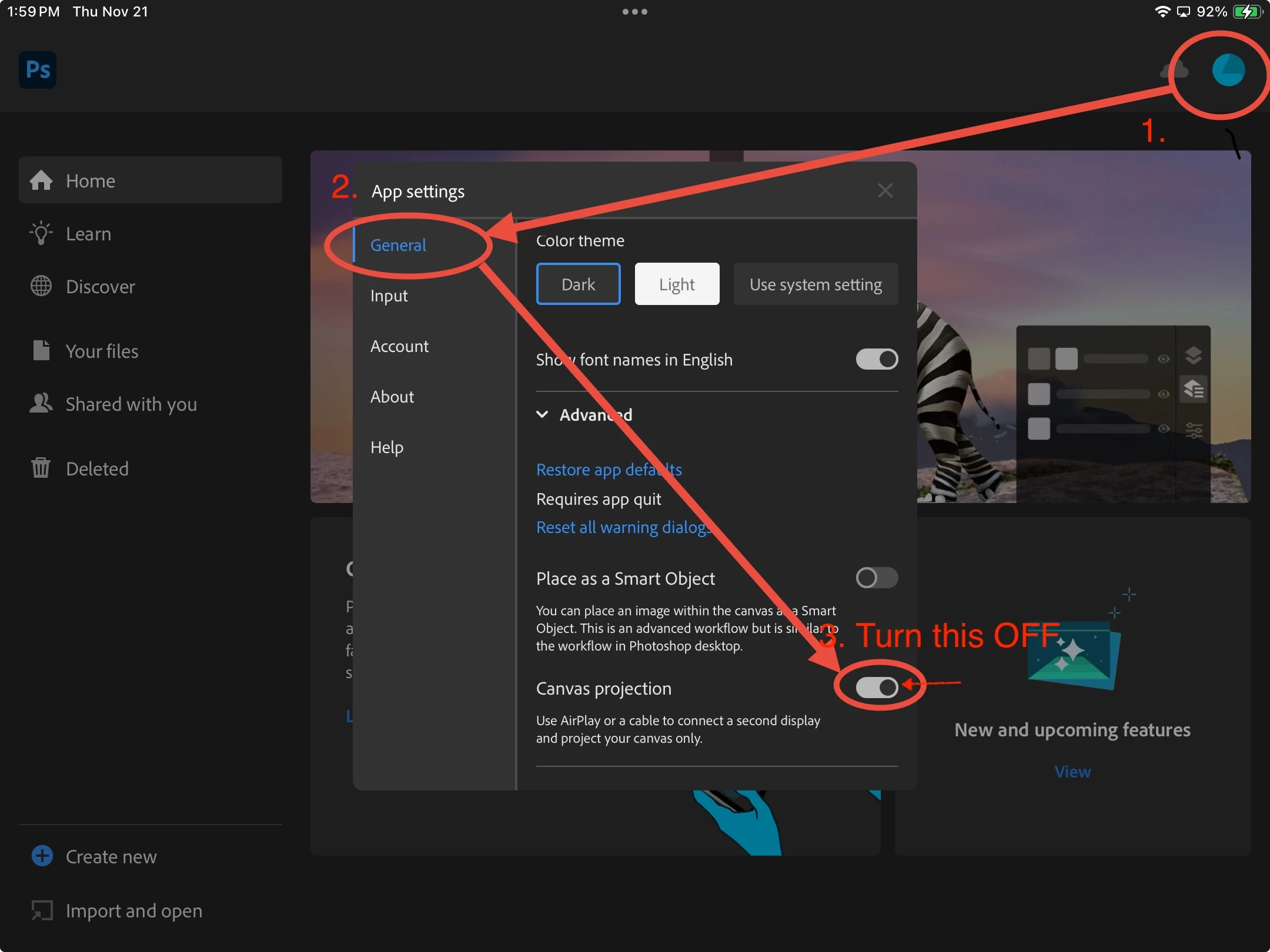 How do I screenshare my photoshop on my ipad to my apple TV AND project the entire workspace?