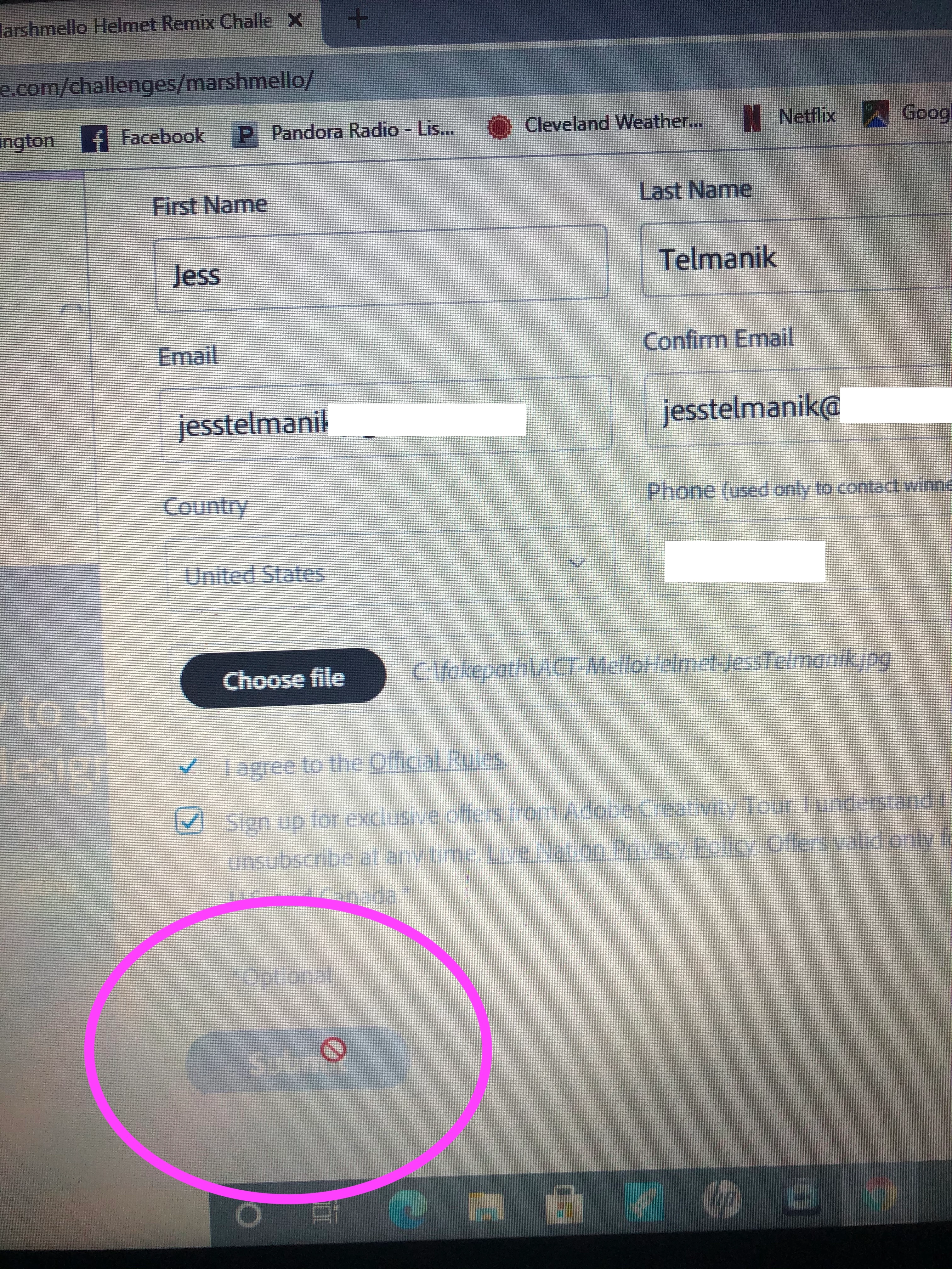 Submission issue with Adobe Creativity Tour Challenge - Please Help!