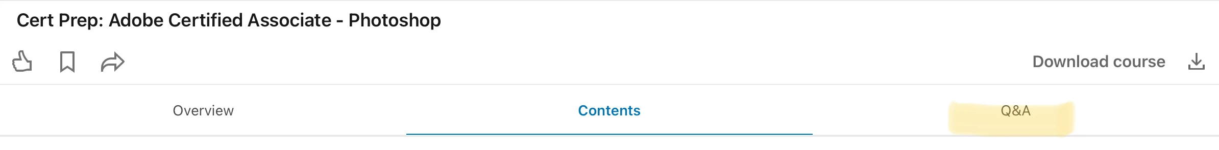 <p>1. <a href="https://www.linkedin.com/learning/cert-prep-adobe-certified-associate-photoshop-2/the-aca-exam-objectives?autoAdvance=true&amp;autoSkip=false&amp;autoplay=true&amp;resume=true&amp;u=42314660" target="_blank" rel="noopener">Cert Prep: Adobe Certified Associate - Photoshop</a> (released: 4/25/<strong>2019</strong>)</p>