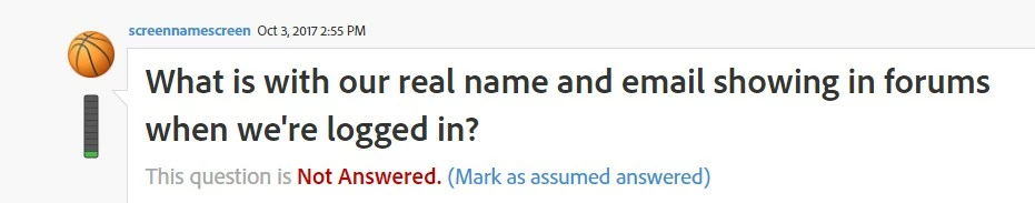 I posted some comments and then an answer to a question in the forum, but I deleted everything because I realized it was showing my real name and business email address (in the popup when I hovered over my name). I checked in a different browser that I wasn't logged into and noticed that it properly protected my name and email, but why the deception? What is with making it hard to know what others see? We should see ourselves exactly the same as others do in the forums.