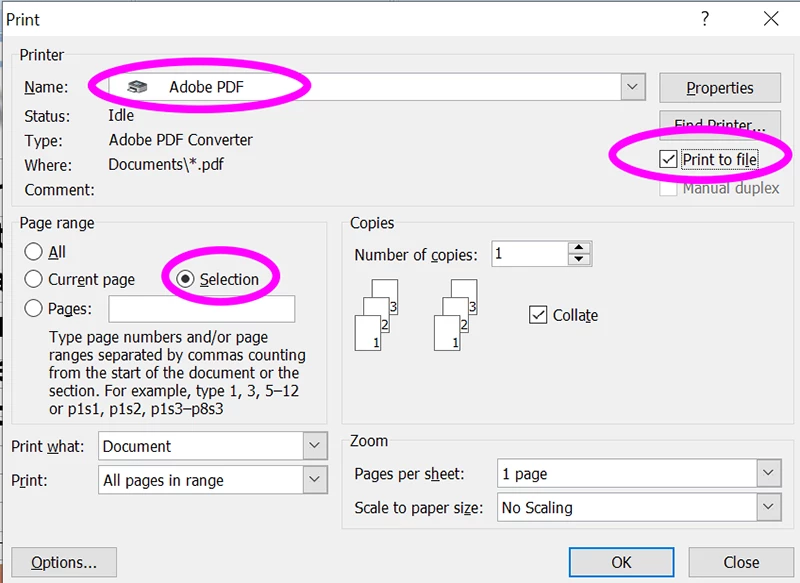 Sometime in the past couple of months Office has lost the ability to select part of a document and print that selection... I can still print an entire document, be that a Word file or an Excel file