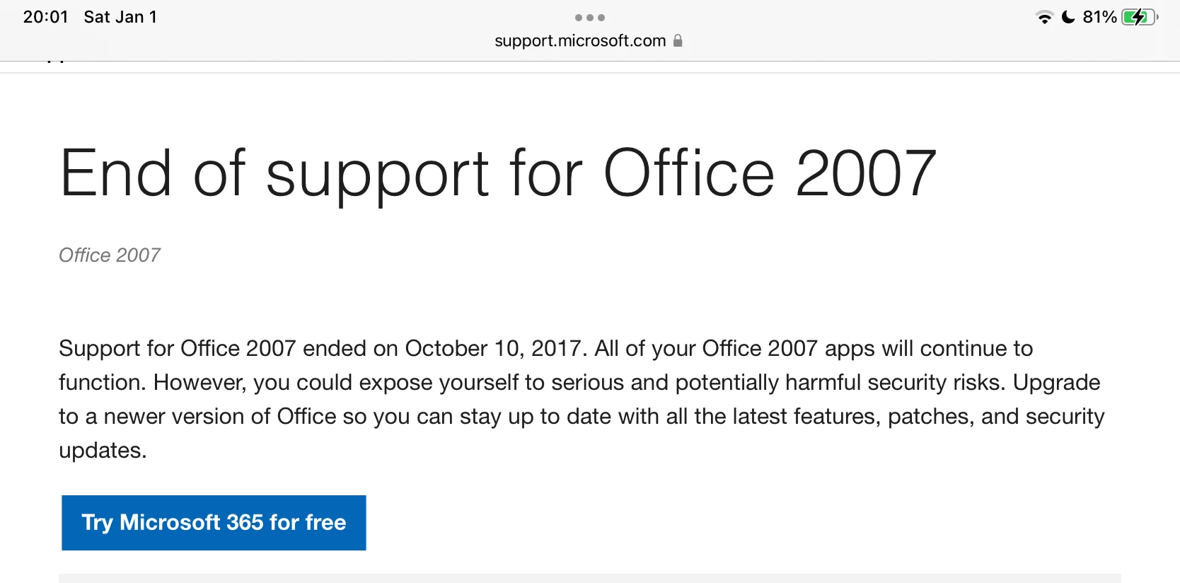 I have Win10 Pro 64bit and MS Office 2007 for word processing and spreadsheet