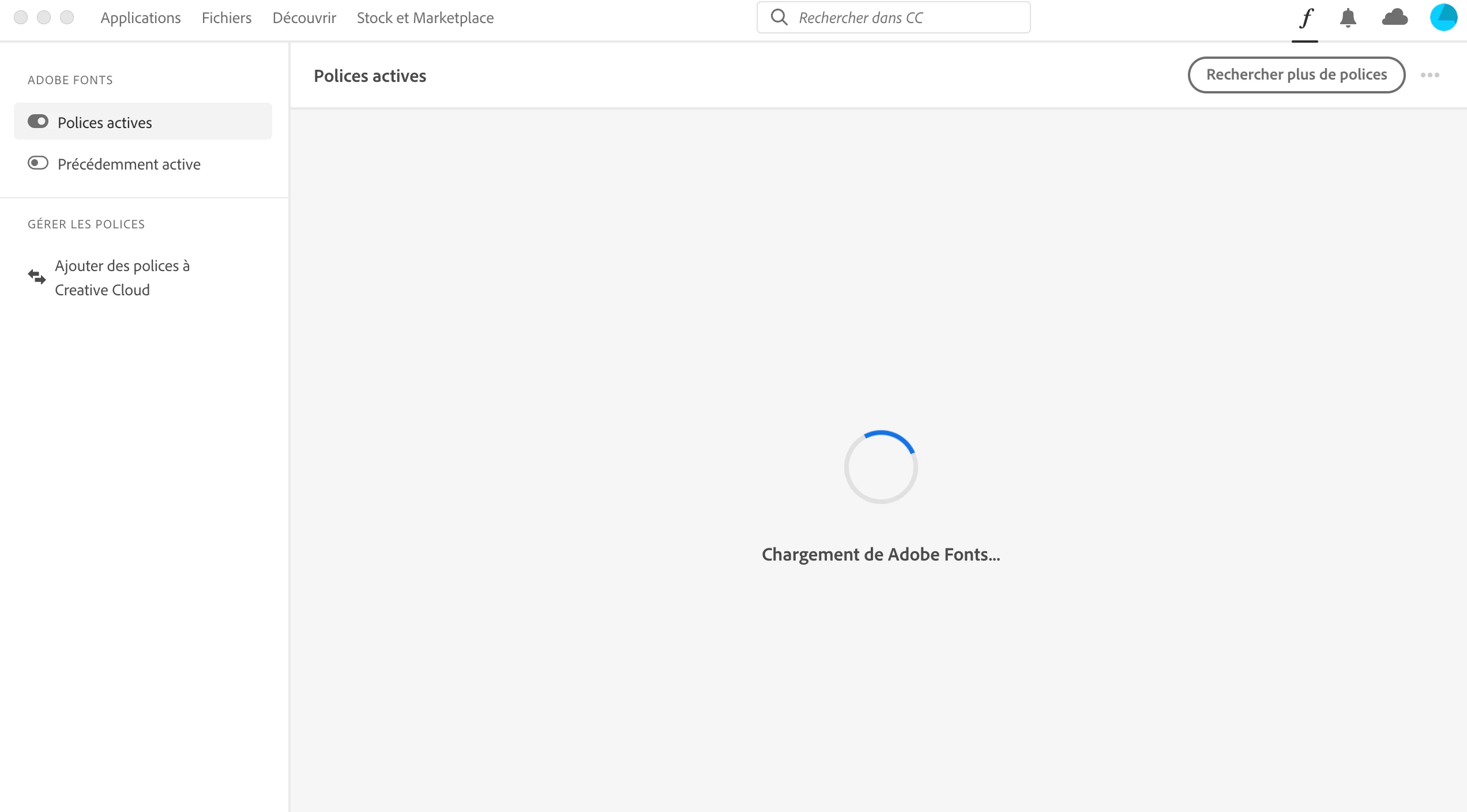 I have tried multiple ways to use fonts from "Adobe Fonts", activating them online and in app. I've also tried to open the creative cloud desktop app and go to fonts. When doing so progress wheel keeps spinning without displaying anything. I've done everything recommended by Adobe without success. I can't use any of the fonts I like when I use any of the Adobe programs, which is incredibly frustrating.