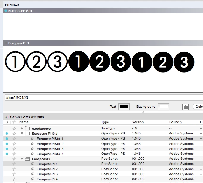 I am going through our font library and removing type 1 versions to promote people using the more stable opentype versions. I have come across European PI, and the characters are missing on the opentype version. In adobe Illustrator I cannot get that app to allow me to use the font as it goes to myriad overtime I choose.