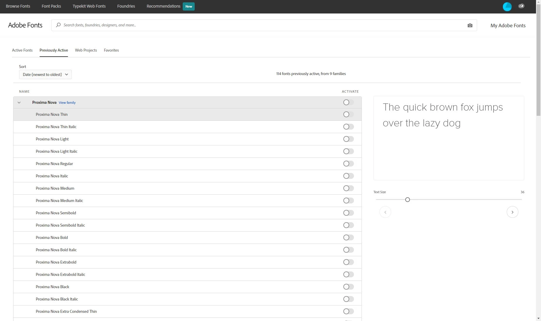And, to add insult to injury, when I open a document with the Proxima Nova font, it automatically reactivates it.