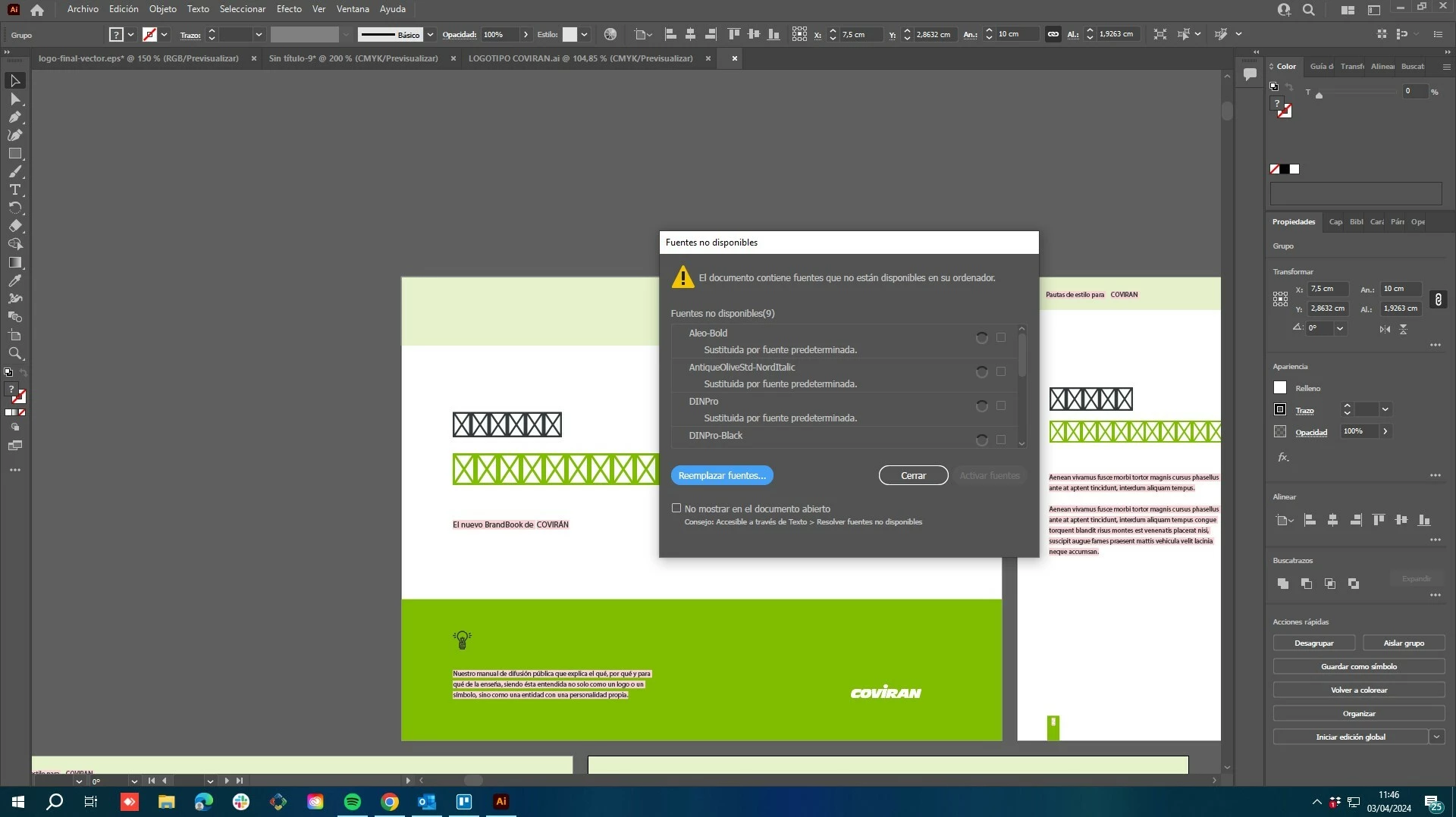 Cuando estoy trabajando en Illustrator y abro algún archivo que tiene una tipografía nueva, bloquea mi pantalla de Illustrator y solo puedo cerrarlo desde la barra de tareas y pierdo todo el trabajo realizado. Si puedo volver a cerrar el aviso la 2º vez que abro el archivo.