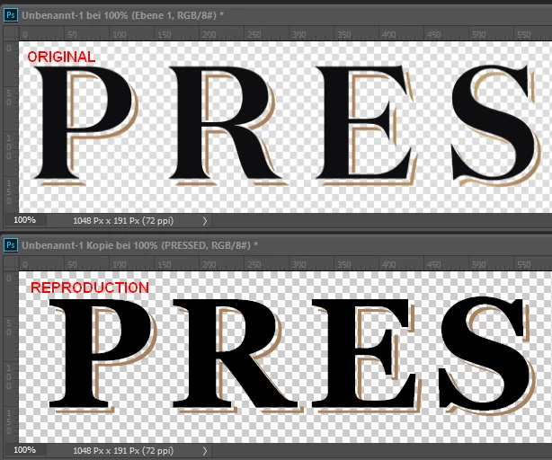 From what I can tell, there are two text layers - perhaps the original (Domain Display, Extra Bold) and a second (regular) behind it, slightly offset, and given the gold color. But the "backdrop shadow" characters are not complete - you can see that the gold serifs below the P, R, E, to the right of the E, S etc. do not connect to the rest of the gold outlines. What would be the most practical way to emulate this?