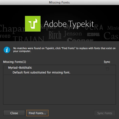 I have many templates for my work with typeset in Myriad, not MyriadPro. When I run CS6, everything works fine. Then I run the same file in CC and I get a missing font message from TypeKit and my font is gone. See attached screenshots. Please, I really need help solving this issue, otherwise I have no reason to have CC.