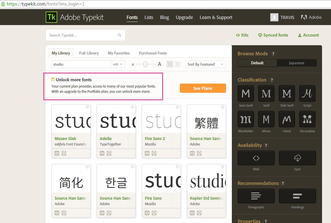 No access the full typekit library with full membership
